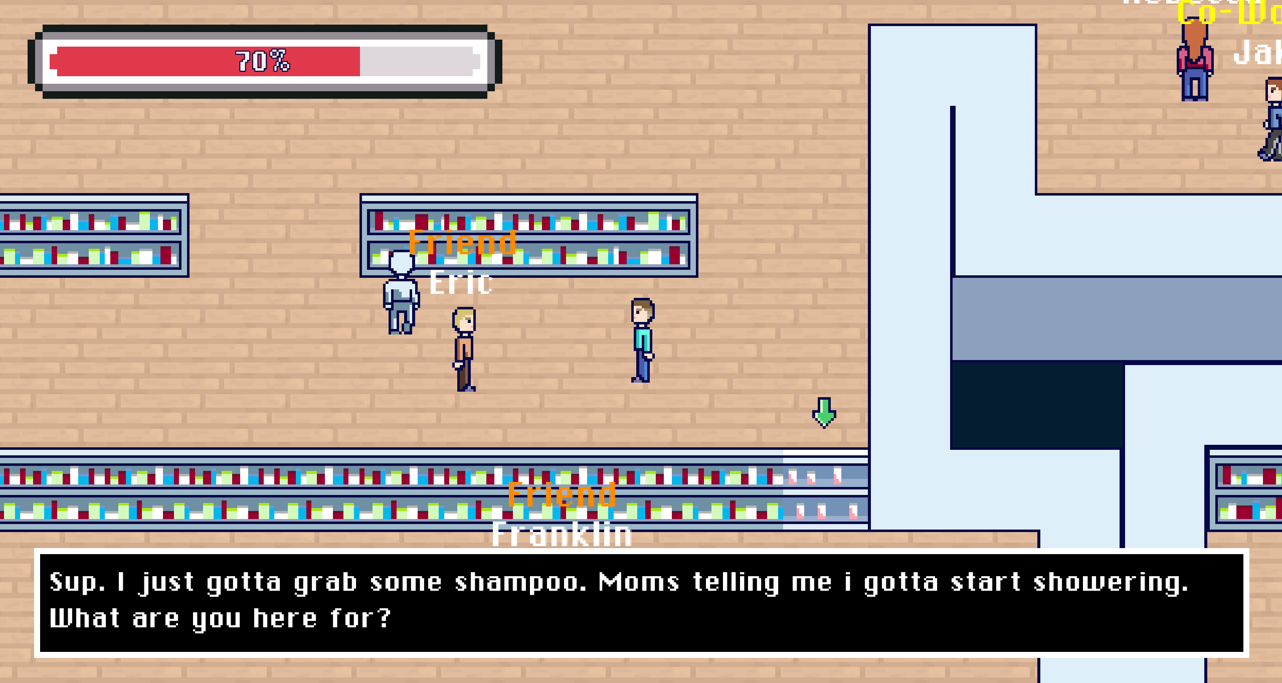 Pharmacy Run is a short comedy stealth game where you, a college student, need to make a quick trip to the pharmacy to pick up a pregnancy test and find out if it's a false alarm.
